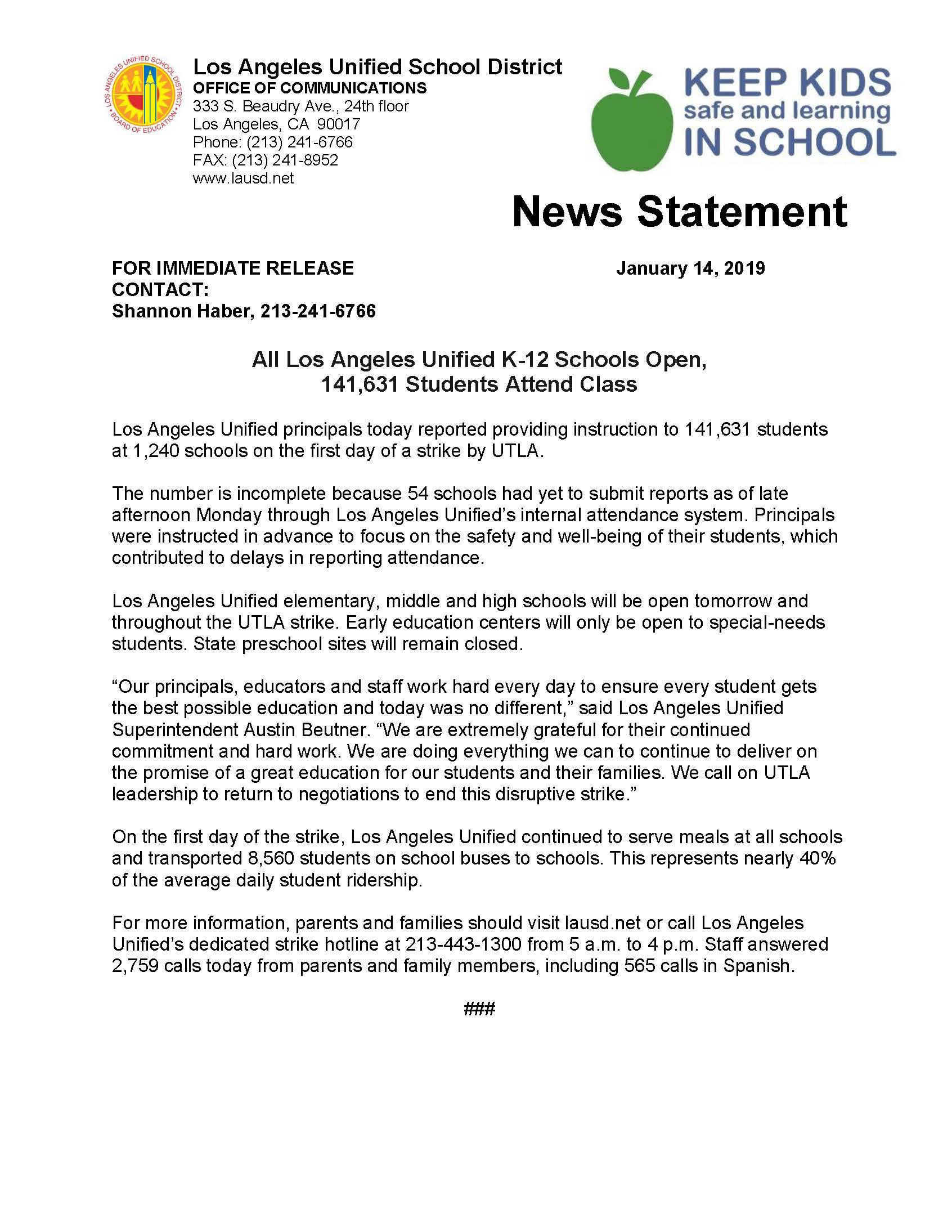 Los Angeles Unified On Twitter Laschools Principals Today Reported Providing Instruction To 141 631 Students At 1 240 Schools On The First Day Of A Strike By Utla Read The Full Statement Https T Co Nw9j3ukesg Https T Co Ddynekriz5